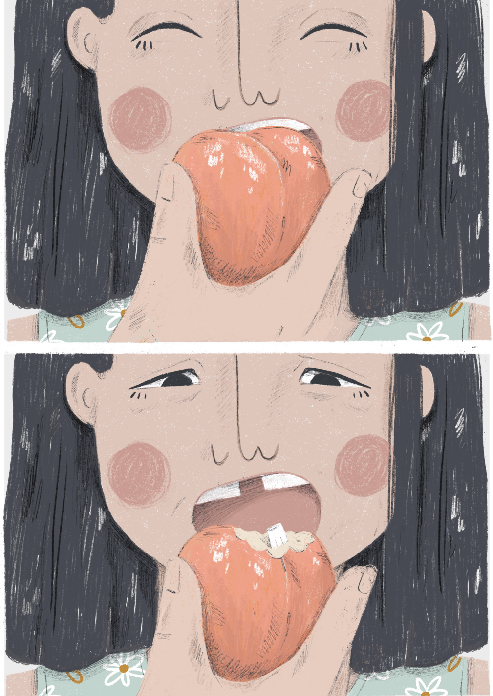 ILUSTRAÇÃO "O DENTE QUE PERDI A COMER UM PESSÊGO MADURO" SARA LOU