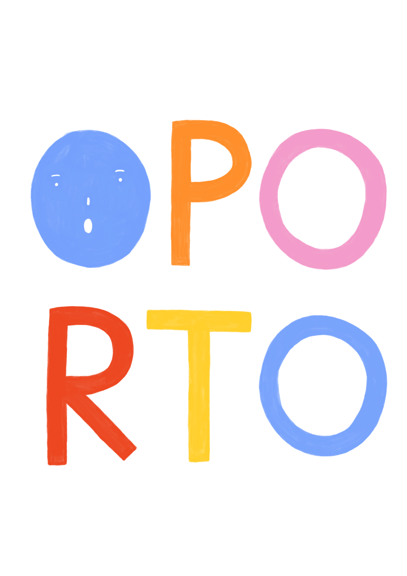• Póster branco com letras coloridas OPORTO num fundo azul