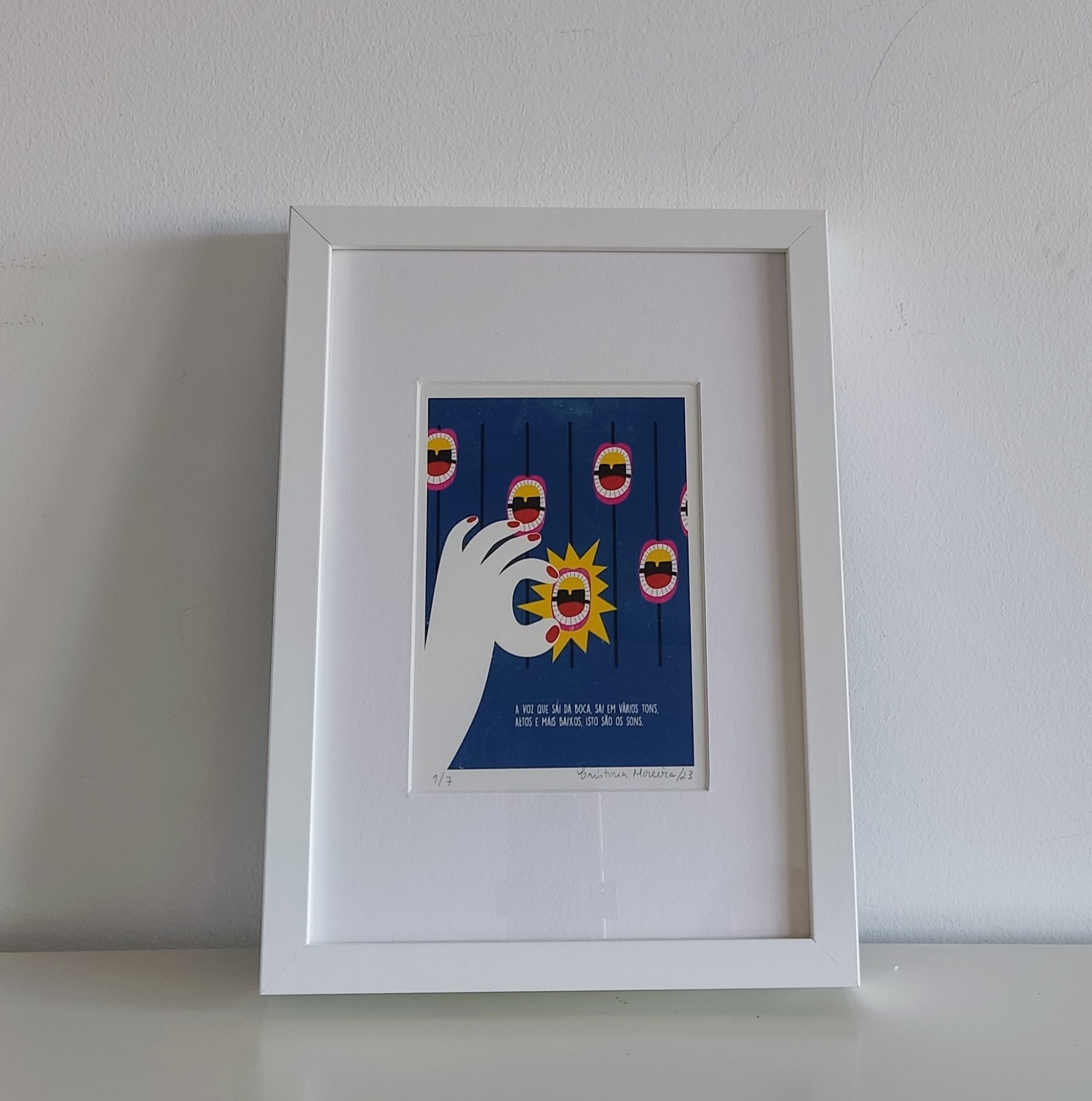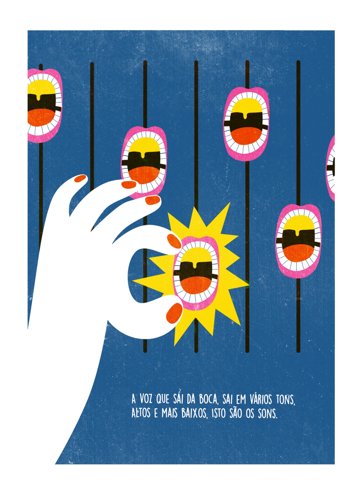 A voz de todos. Todos temos uma voz e podemos usá-la para muitas coisas. Cristina Moreira assim como Crisarte, fez um poema sobre a voz onde usou algumas frases e ilustrou-as. As vozes que falam baixinho, as vozes barulhentas e as harmoniosas. É assim que a ilustradora, apresenta a sua primeira exposição individual. - A Voz - Uma coleção que apresenta vários momentos onde usamos a voz, "A voz que sai da boca, sai em vários tons, altos e mais baixos, isto são os sons", uma das estrofes do poema. Vai encontrar ilustrações em impressão digital com cores vibrantes, um espelho feito na técnica de Punch needle e um painel gigante pintado à mão. Uma exposição singular com um tema atual que a Crisarte quis abraçar e partilhar com toda a gente. A não perder!