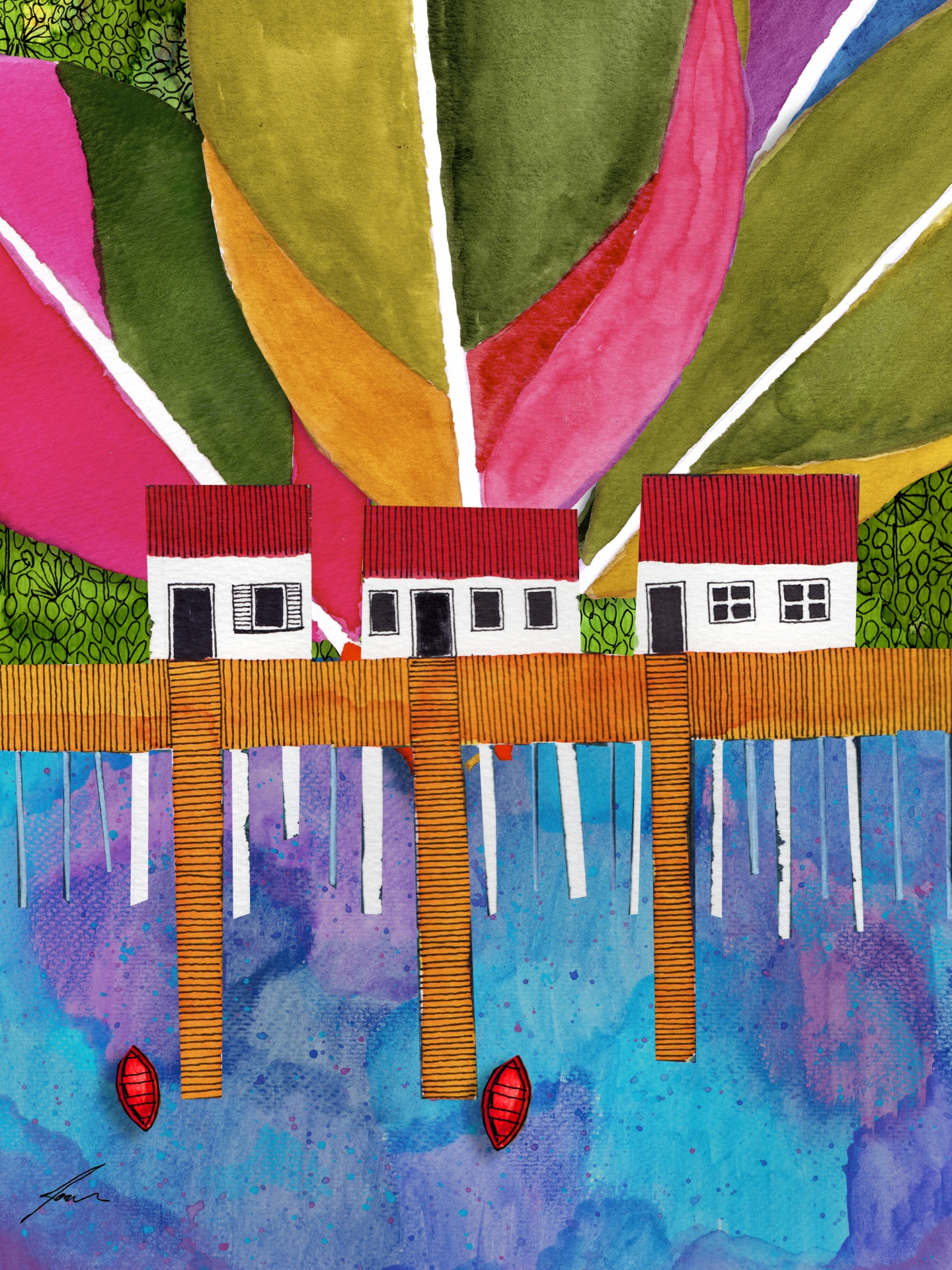 ILUSTRAÇÃO "PALAFITAS E FOLHAS II" JOANA NÓBREGA