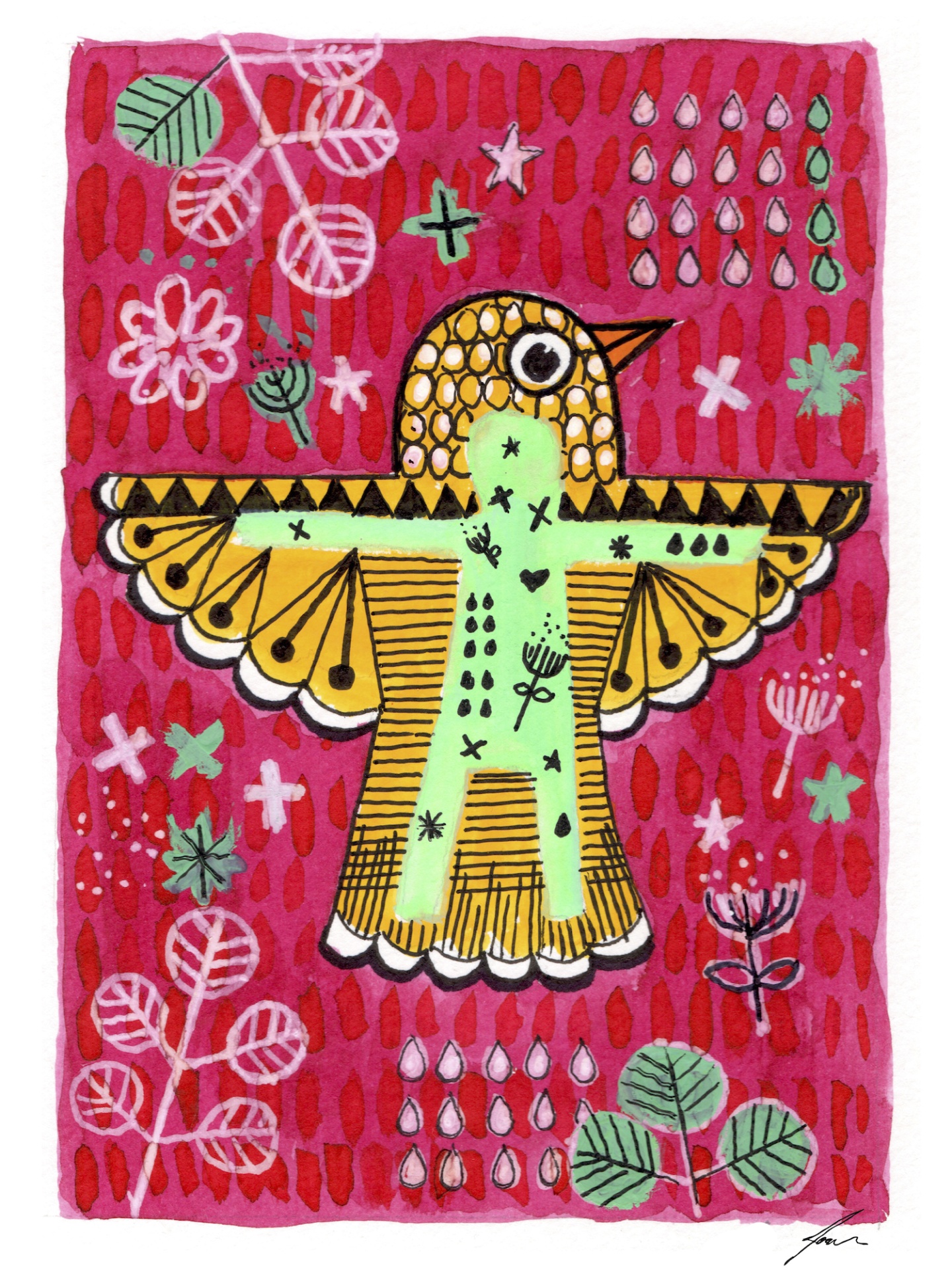 ILUSTRAÇÃO "PÁSSARO AMARELO SOBRE ROSA" JOANA NOBREGA