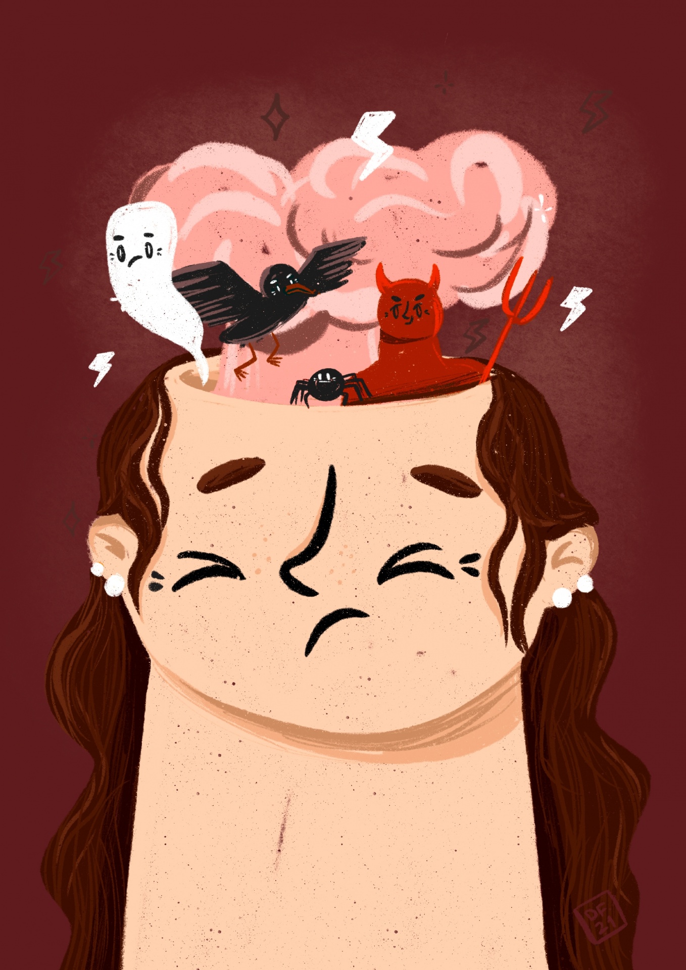 ILUSTRAÇÃO "PENSAMENTOS, MEDOS E ANSIEDADE" DANIELA FORTUNATO