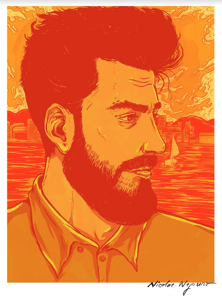 Esta é uma ilustração de 2016. Faz parte de um projeto pessoal onde associei uma cor a um retrato para explorar profundidade e atmosfera.