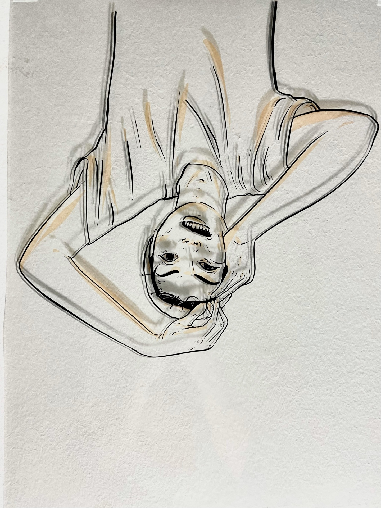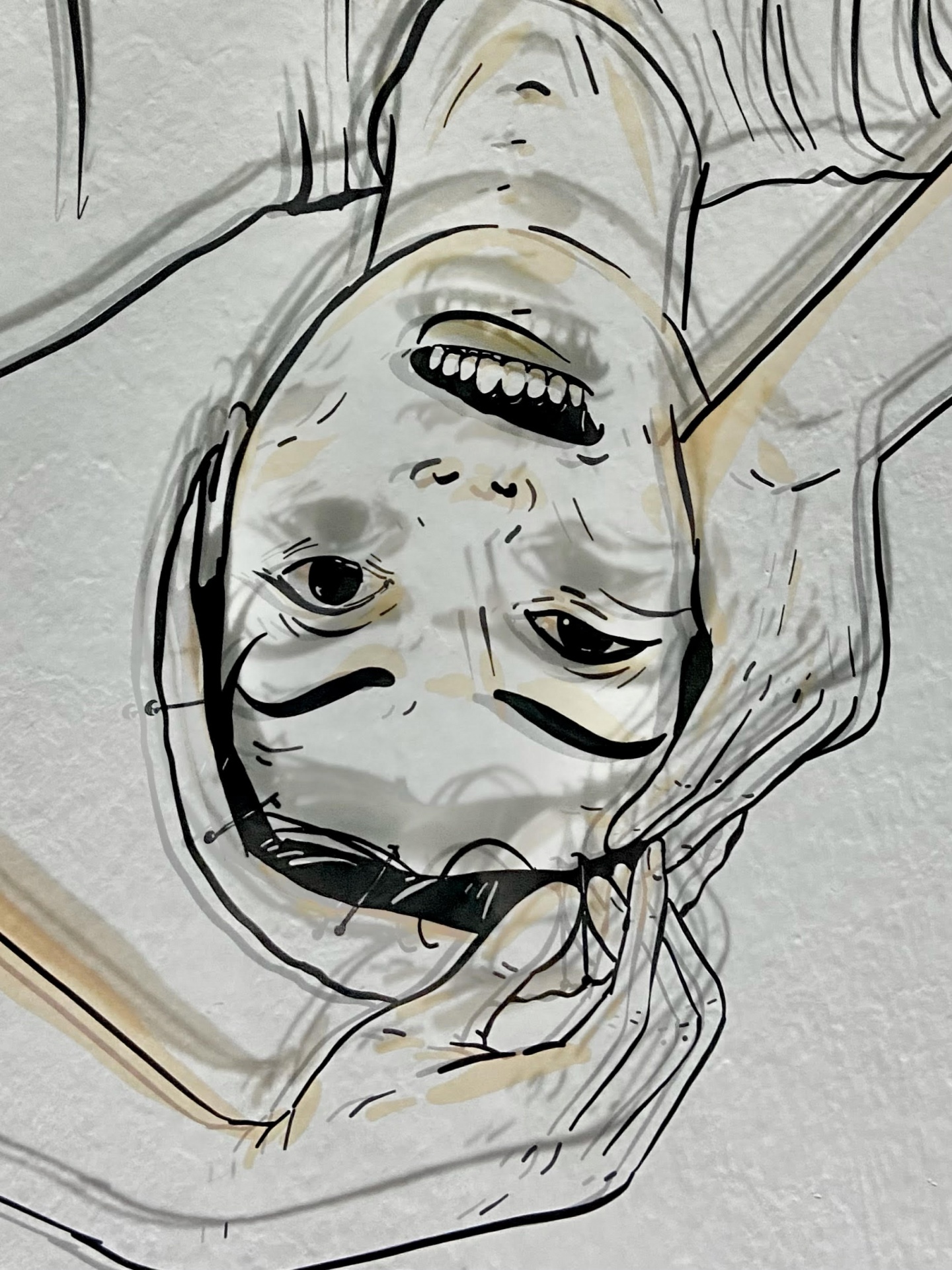 • Pintura mural estilizada de uma figura humana com as mãos ao redor do rosto