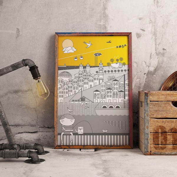 POSTER "PORTO SKYLINE (AMARELO E CINZA)" 100% PORTUGAL