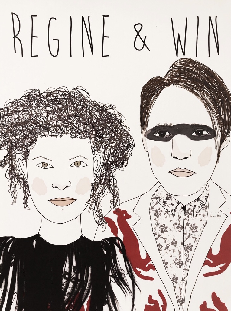 • Ilustração de duas figuras humanas com texto REGINE & WIN