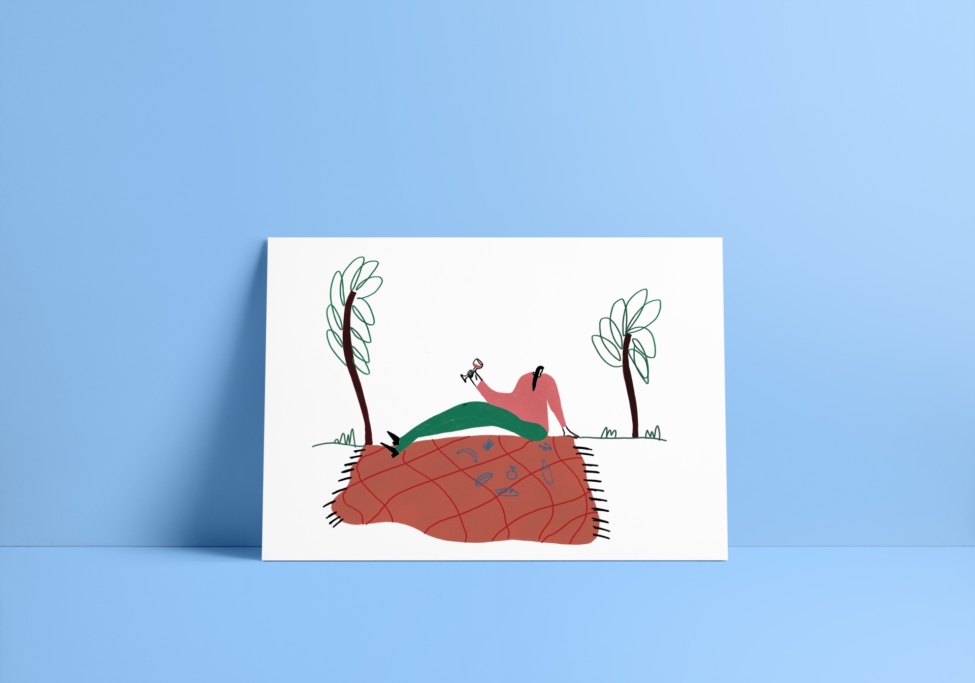 • Cartaz com ilustração minimalista colorida em fundo azul
