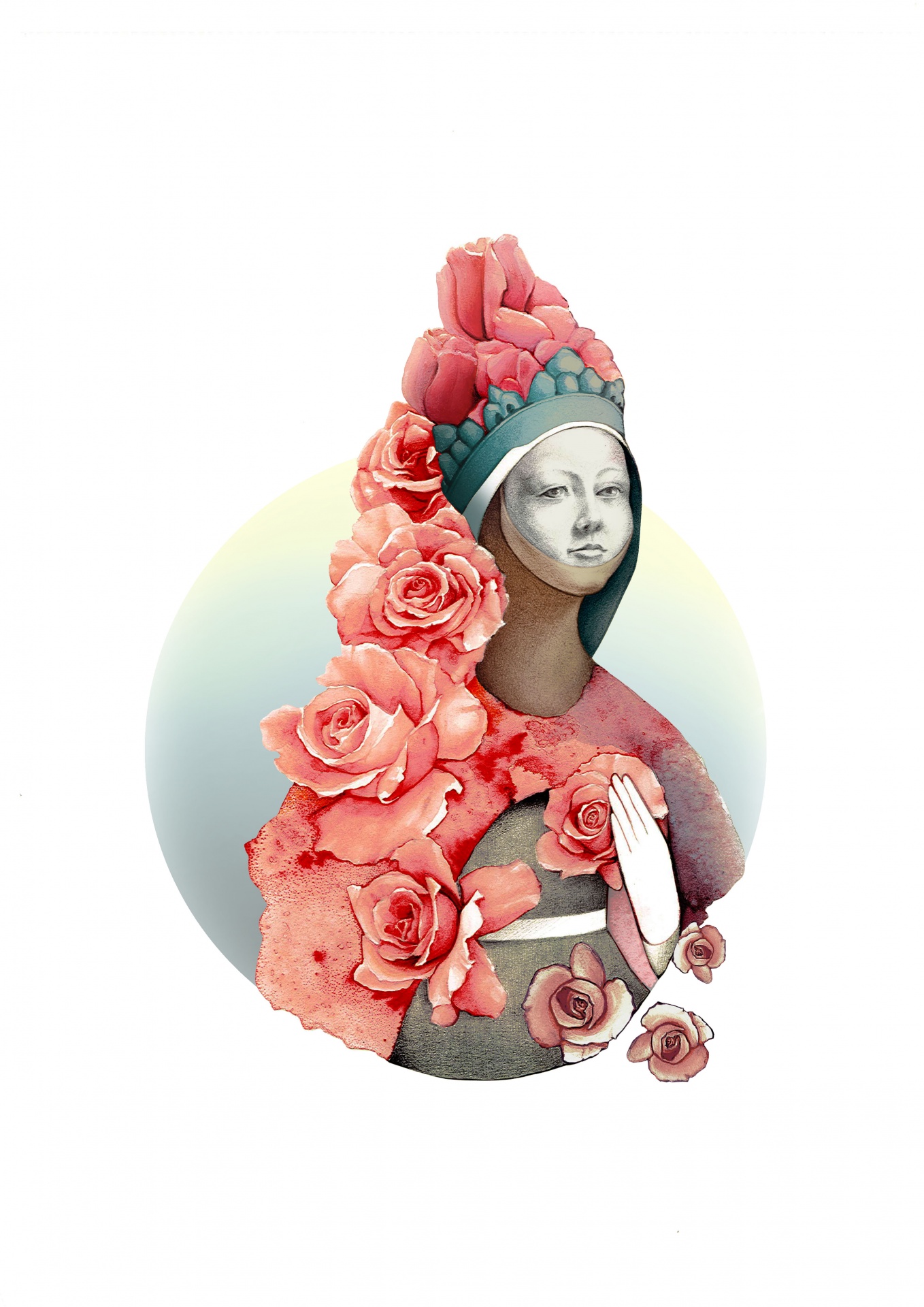 Esta ilustração teve como referência o milagre das rosas. Segundo a lenda, este milagre aconteceu quando a rainha D. Isabel foi surpreendida pelo seu marido que desaprovava a relação de proximidade que ela estabelecia com os mais pobres e carenciados. Nessa altura, ela levava consigo pães para distribuir pelos pedintes e, para tentar esconder o que iria fazer, ter-lhe-á dito que albergava rosas quando ele a abordou, perguntando-lhe o que trazia consigo. Era janeiro e tal não era possível, soube nesse momento que iria ser descoberta, no entanto, quando abriu o manto, caíram-lhe rosas do colo.