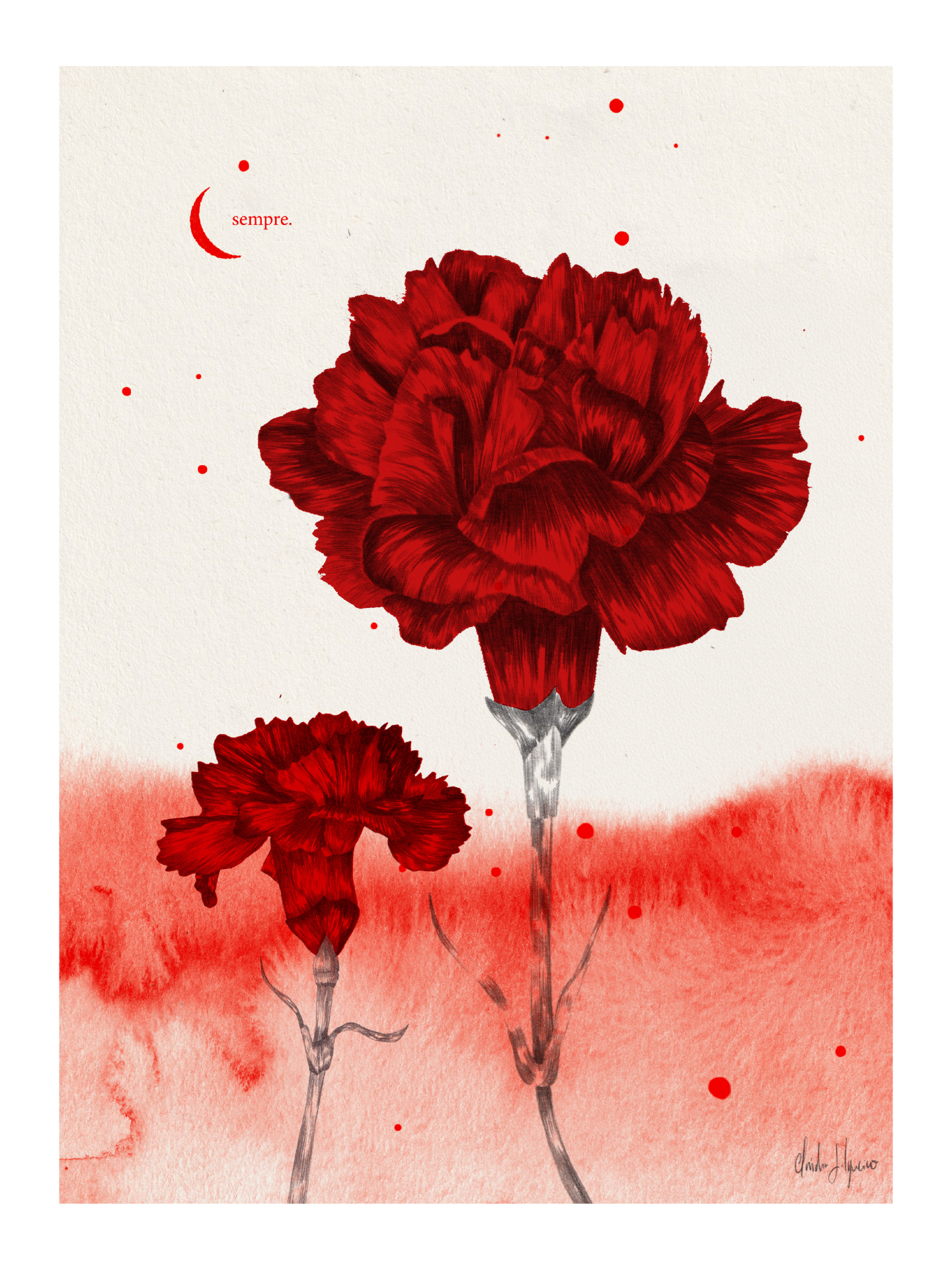 Quis trazer um bocadinho do que gritamos na rua para esta ilustração. Marchamos dia 25 de abril, vamos marchar sempre! Saímos à rua, gritamos pela liberdade e erguemos o nosso cravo e cartazes. 25 de Abril Sempre!