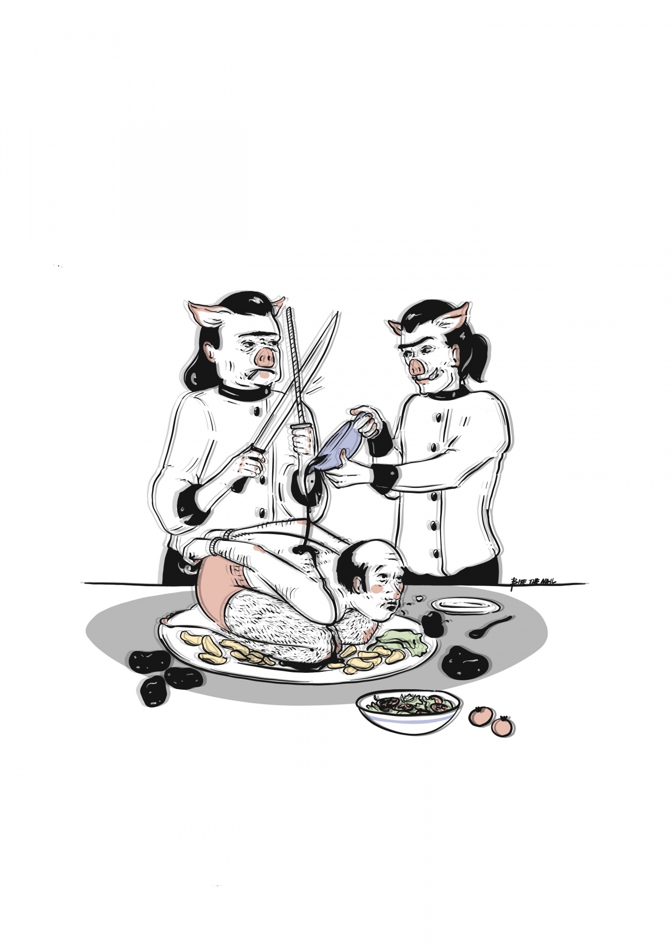 Na “Sugestão do chefe” a cozinha tradicional portuguesa surge como mote para brincar com o sentido das palavras, através da re-interpretação de sete “pratos”. Aqui, cada ilustração representa um dia da semana - uma sugestão - encontrando-se o nome do prato em aberto; pelo que a verdadeira apreciação de cada peça surge da sua análise.