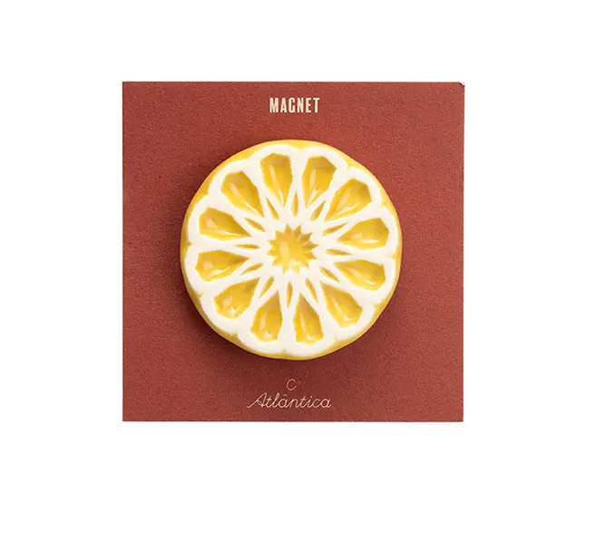 • Imã decorativo em forma de fatia de fruta seca montado em cartão castanho