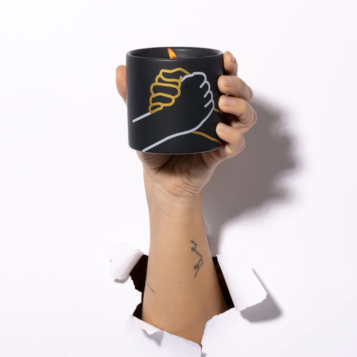Better together! Express yourself with these colourful matte ceramic candles. Each candle comes with a gold foil stamped dust cover with a fun sentiment to share with the people you love.