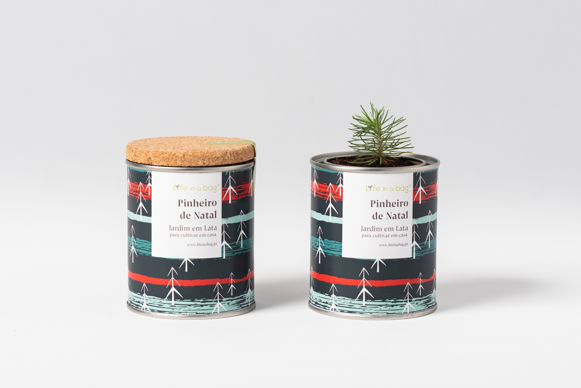 Uma lata de tinta que contém tudo o que necessita para fazer crescer o seu pinheiro de Natal. Só tem que abrir a tampa de cortiça e regar.