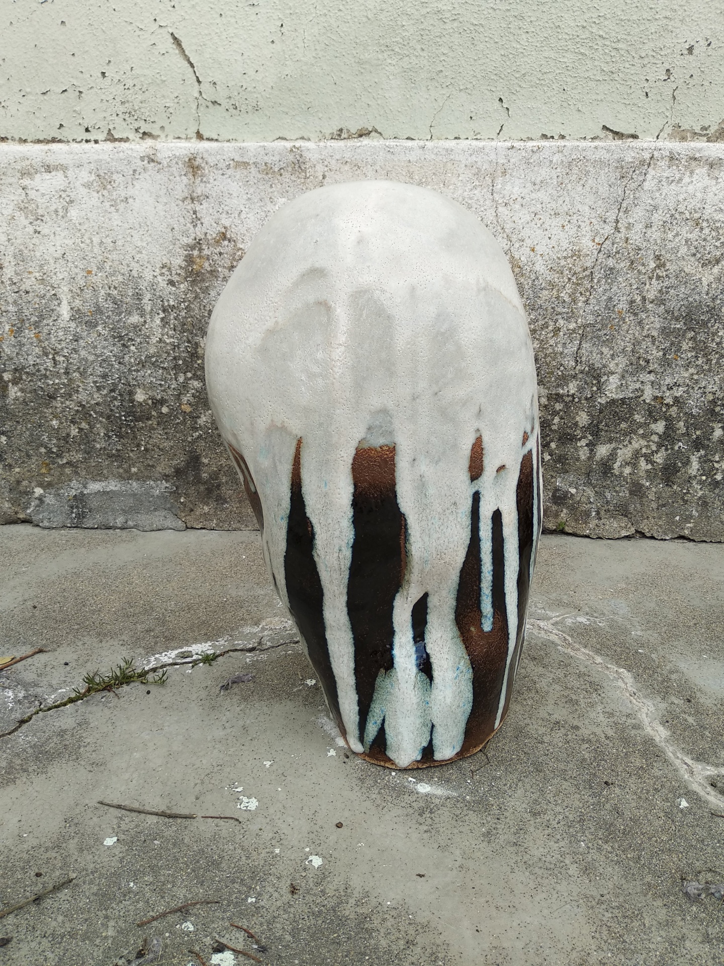 • Vaso cerâmico com pintura castanha e vidro branco escorrendo