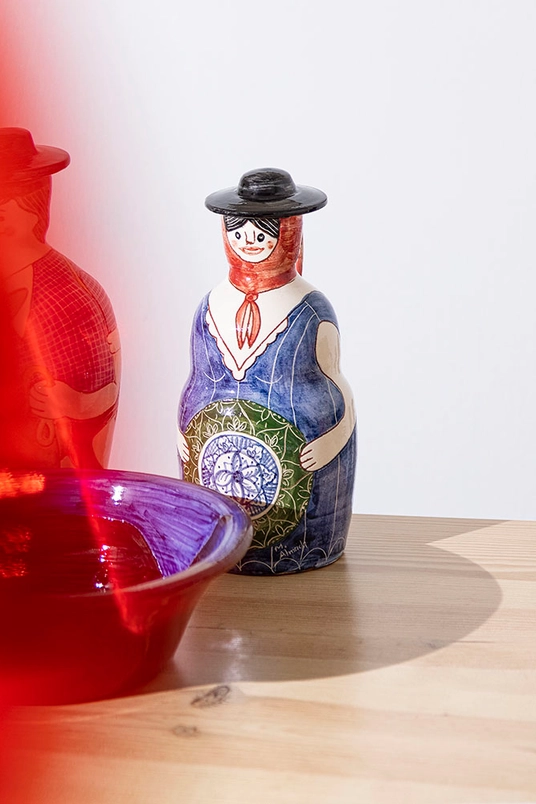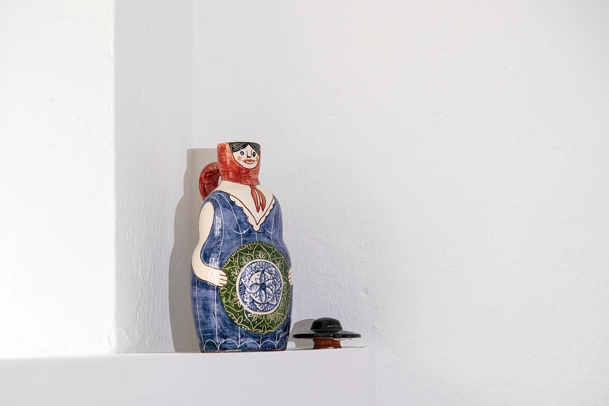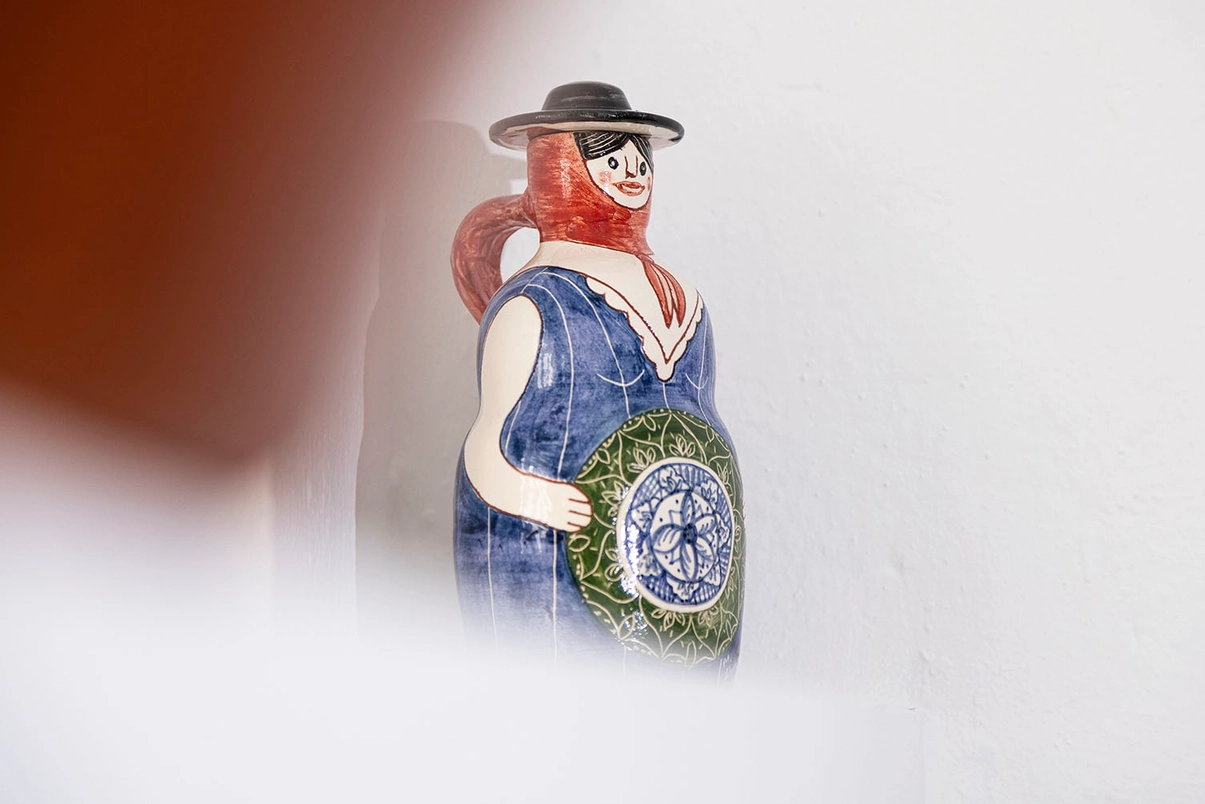 Maria é um jarro terracota ilustrado pela Mantraste durante uma residência em Viana do Alentejo. Feito e pintado à mão.