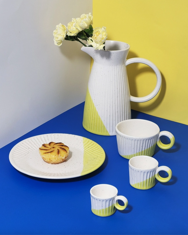 Tália, a coleção que traz um pedaço de história para a sua casa! Imagine isto: a sua mesa de jantar transformada num banquete vibrante para os olhos com a nossa louça amarelo-sol.