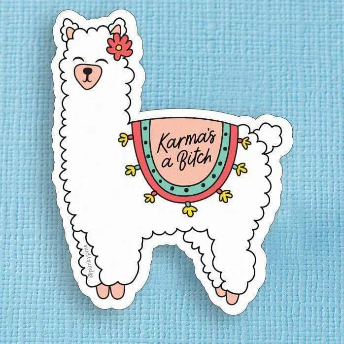 KARMA'S A BITCH LAMMA DIE CUT VINYL STICKER PUNKY PINS