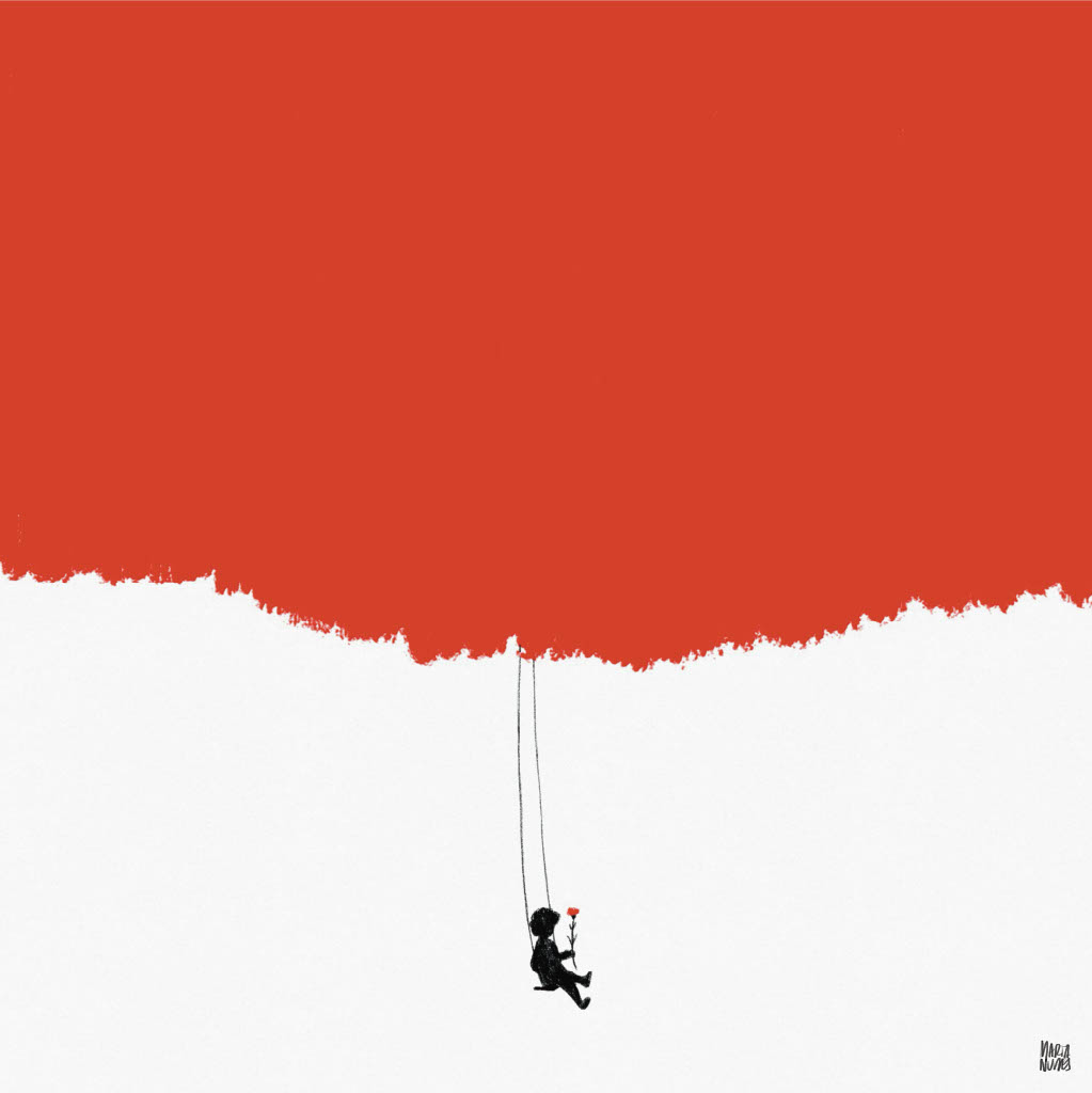 • Ilustração de homem a baloiçar sob uma área vermelha extensa
