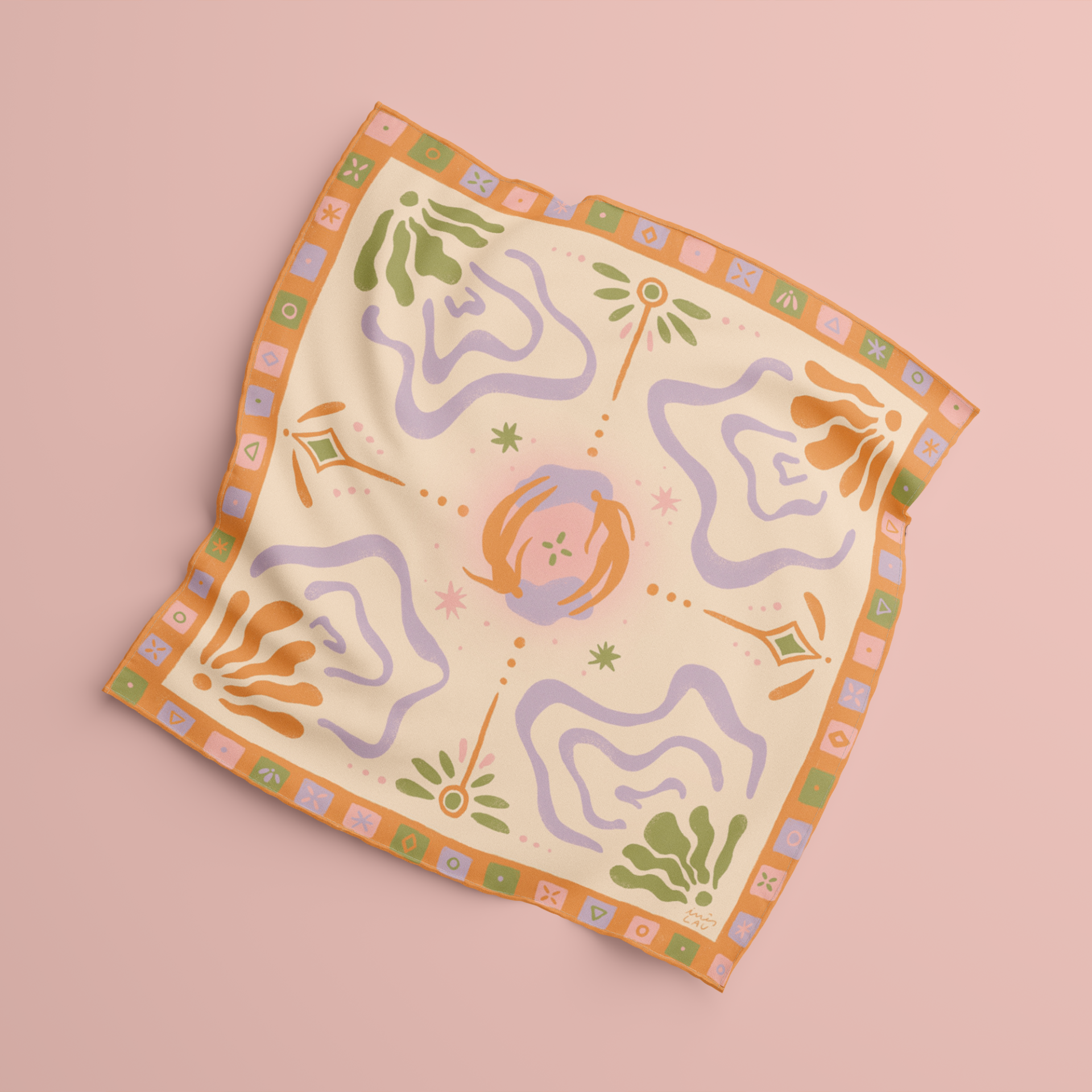 Ilustração digital impressa em lenço de viscosa 65x65cm