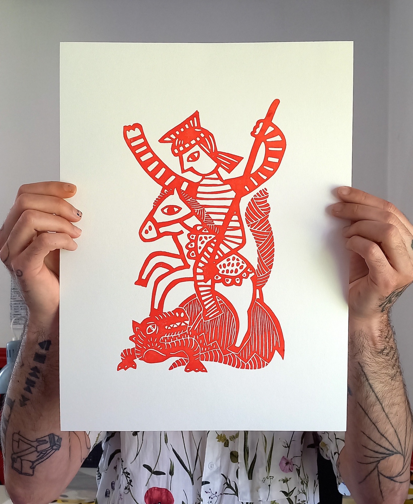 LINOGRAVURA "SÃO JORGE" JEFFERSON RIB