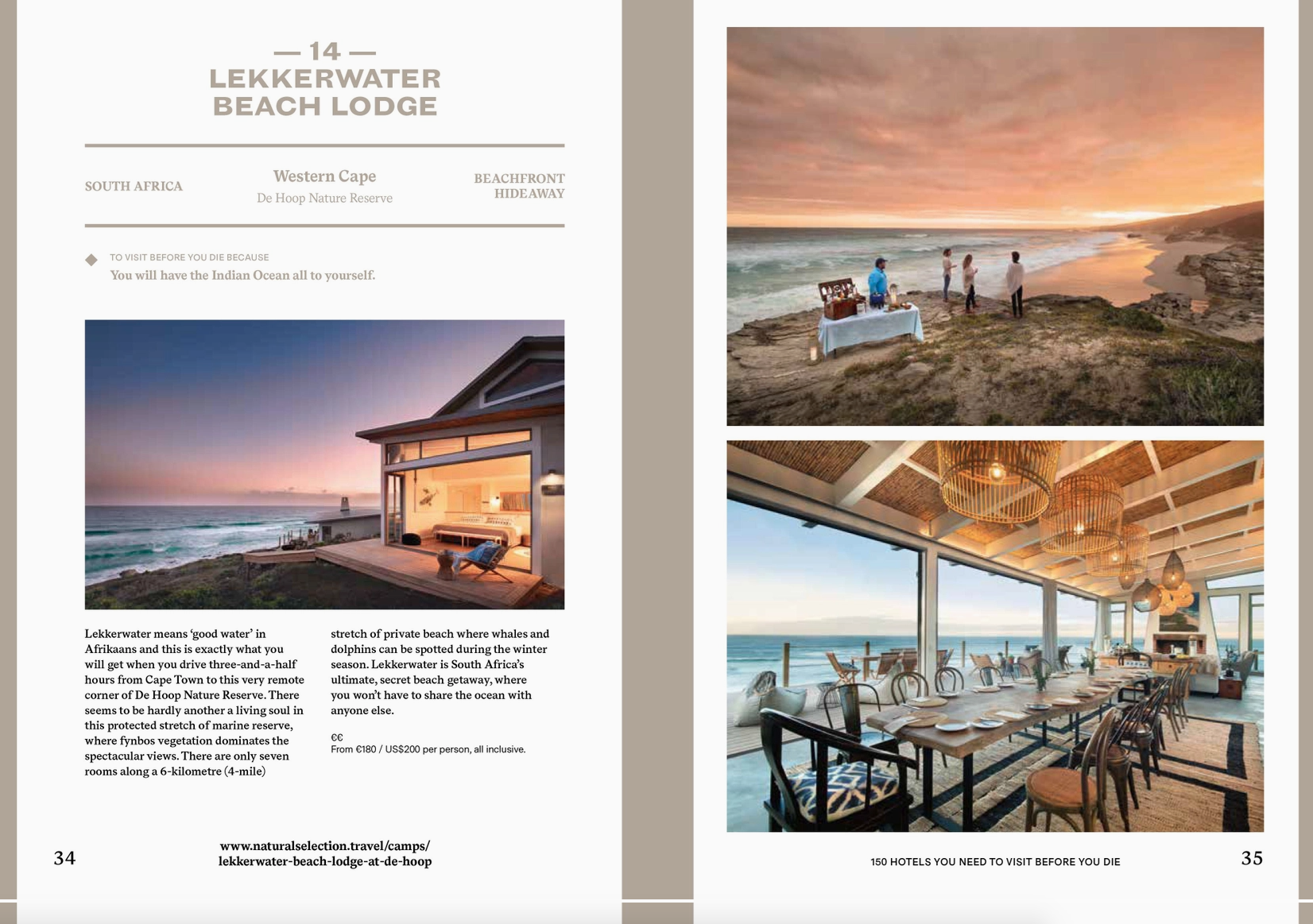 Todos os hotéis apresentados garantem uma experiência única, seja uma vista ou uma localização extraordinária; luxo incrível ou charme inimitável; design arrojado ou serviço sofisticado; ou simplesmente raias manta e tartarugas marinhas a nadar debaixo da sua cama.