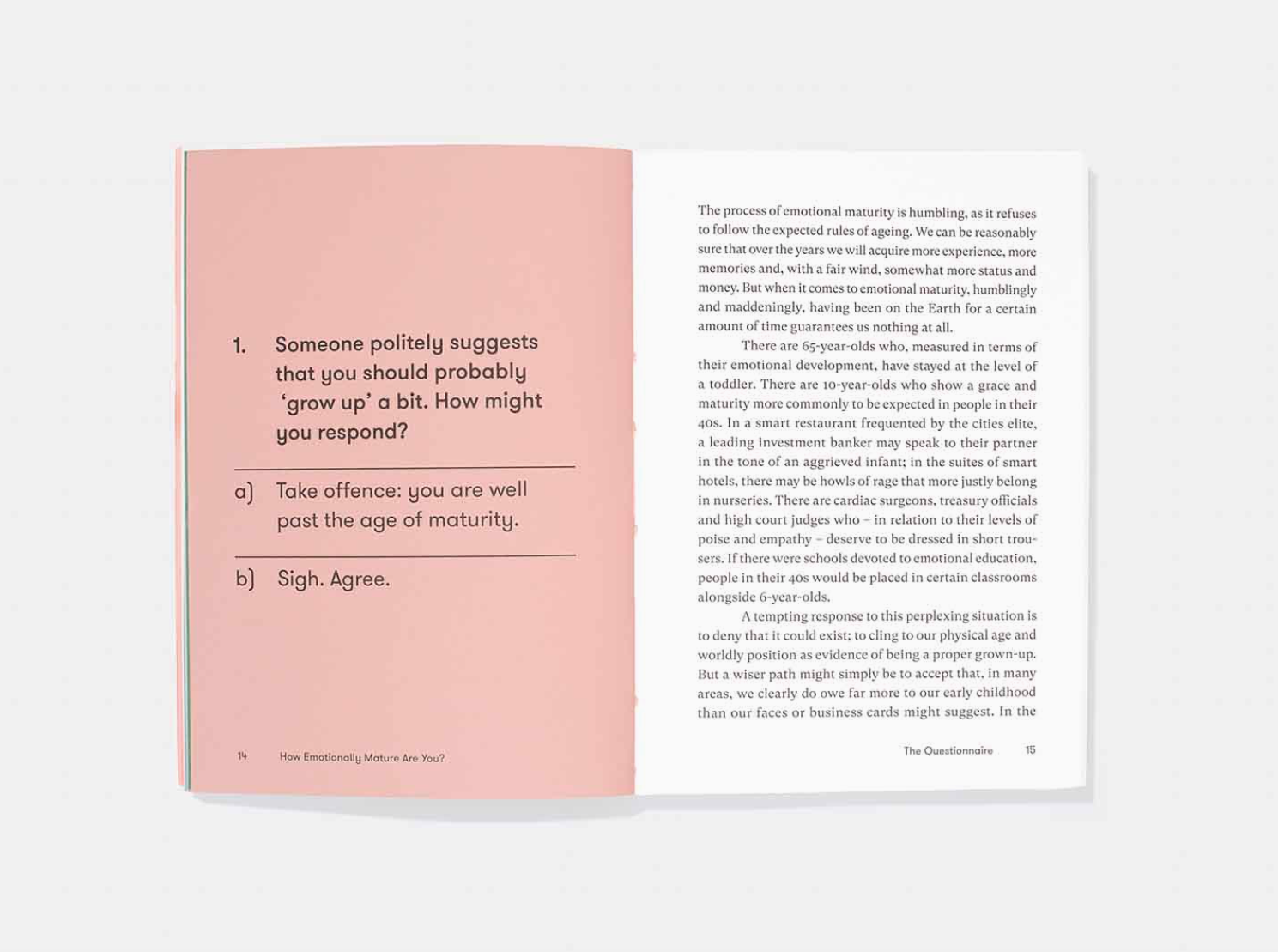 • Livro com capa verde e rosa, texto preto 'HOW EMOTIONALLY MATURE ARE YOU?'.