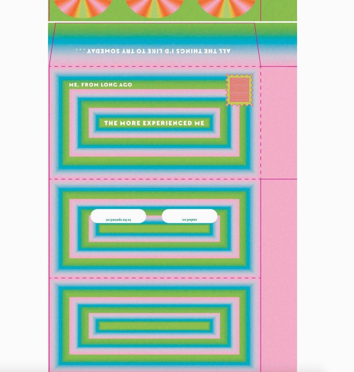 Mantenha-se em contacto com o seu eu do passado, presente e futuro com este livro de cartas único. Escreva cartas para si próprio(a) — como se fossem entradas num diário — e depois sele-as com os autocolantes incluídos. Defina uma data para as abrir e não espreite até que chegue a hora.