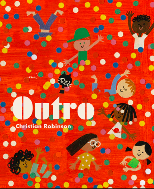 • Capa de livro colorida com crianças desenhadas e título Outro em branco
