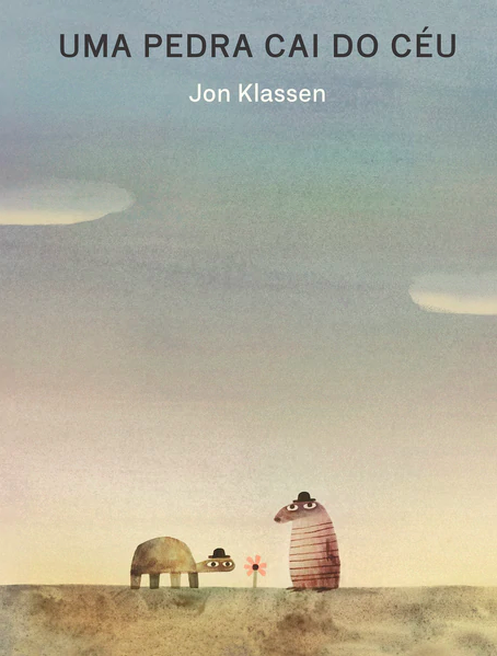 E se, quando menos esperas, uma pedra cai do céu, mesmo em cima do teu sítio preferido? Uma curta-metragem de suspense e choque, em cinco actos. Está quase tudo dito desde o início: uma pedra cai do céu. Mas onde e quando? Três personagens conhecem-se, sentem amizade, inveja, medo, imaginam o futuro e vêem o pôr-do-sol. O enredo adensa-se com o alienígena, a intensa troca de olhares, os silêncios cúmplices, numa vertigem de ascensão e queda hilariante, que só Jon Klassen sabe encenar.