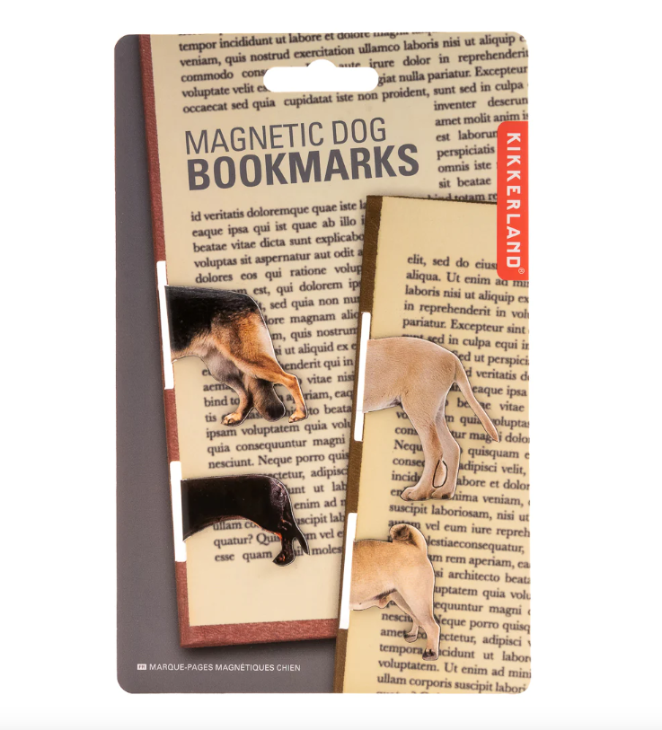 Marcadores de livro magnéticos com forma de patas traseiras de cão em embalagem Kikkerland