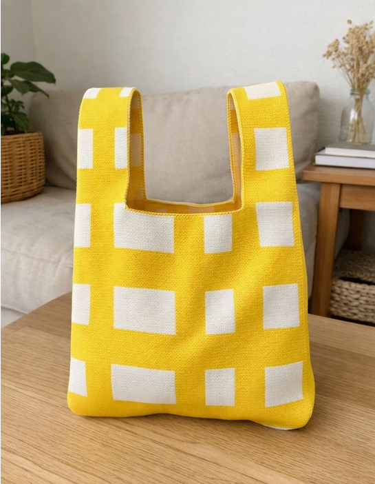 MALA DE MALHA "SUNNY GRID" M AMARELA TOKEII KNIT STUDIO