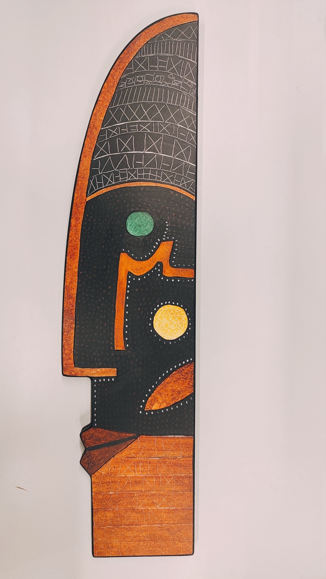 Tudo é transportado para a máscara, tornando-a mais do que uma simples obra decorativa, transformando-a num portal para outro mundo, um guardião que carrega identidade e simbologia.