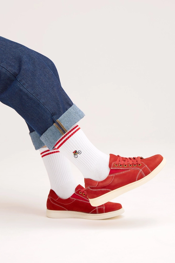 Descrição Attention bike enthusiasts! Our cool organic socks with embroidered bike motif and sporty stripes always make the running.