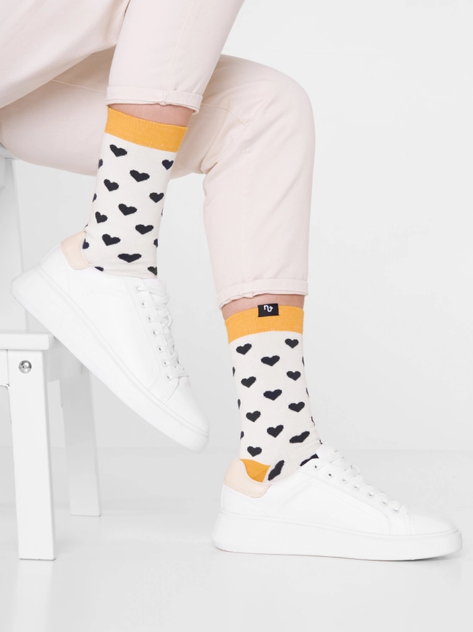 Descrição Our super soft socks with black heart pattern were made with lots of love and even more organic cotton.