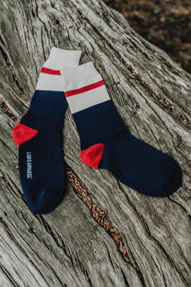 MEIAS RISCAS VERMELHAS PÉ AZUL LOBO