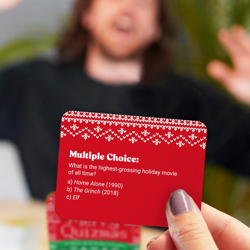Merry Quizmas apresenta 100 perguntas sobre todas as coisas do Natal, desde filmes icónicos e músicas, até tradições globais e comida que vão fazer com que as tuas papilas gustativas dançam o ballet do “Quebra-Nozes”! 👯♀️ É a única forma de mostrar os teus músculos mentais e provar de uma vez por todas que és o campeão reinante de todas as coisas azúrias e alegres! Por isso, prepare os chapéus de Pai Natal, comece as canções e dê um trenó nesta época natalícia com o Merry Quizmas — o jogo de trivialidades de férias mais árduo de sempre! 🎉