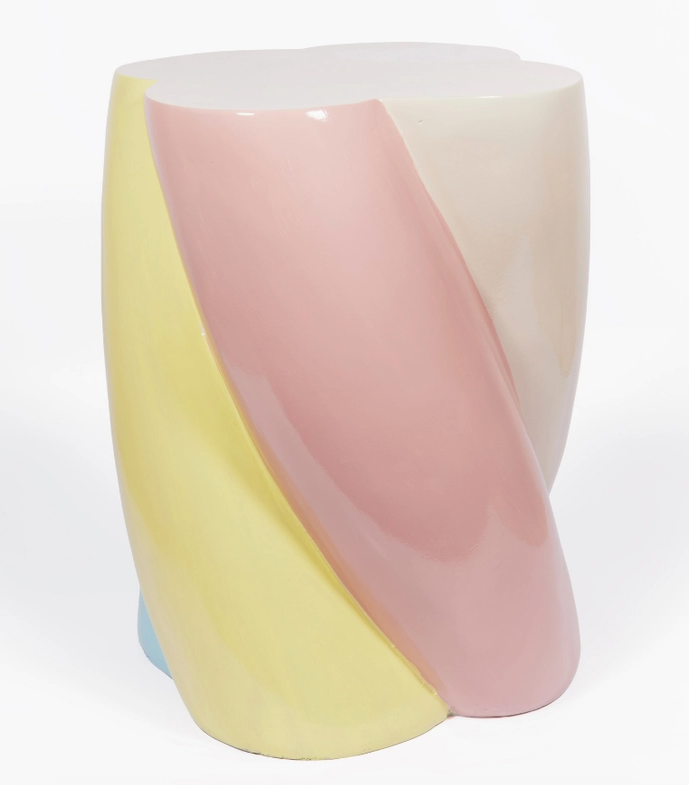 • Mesa de apoio ou banco de cerâmica colorida com padrão ondulado