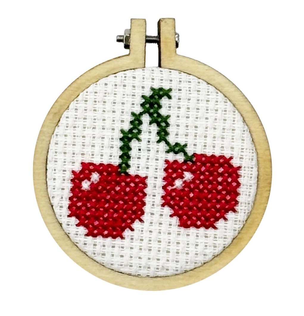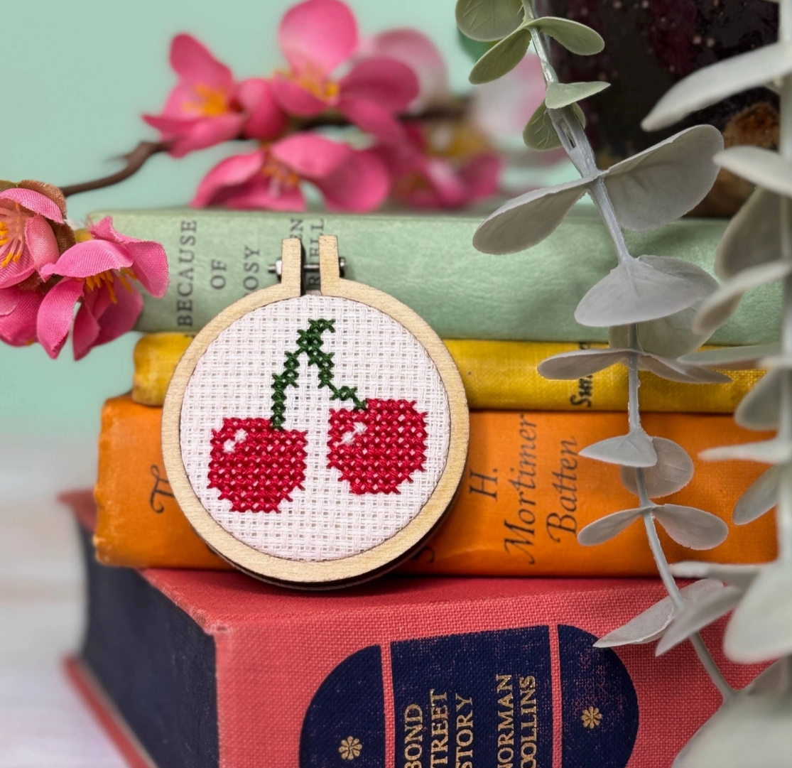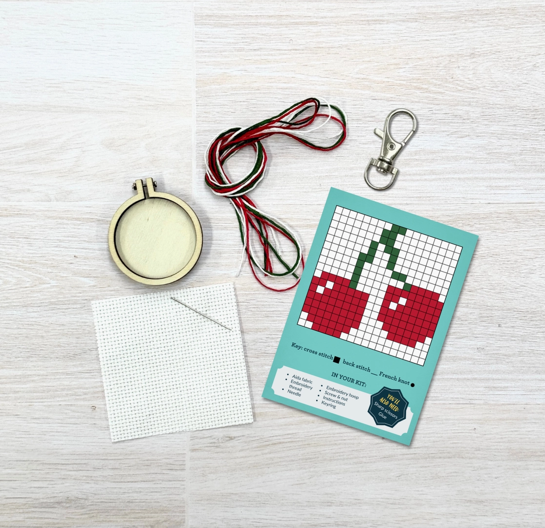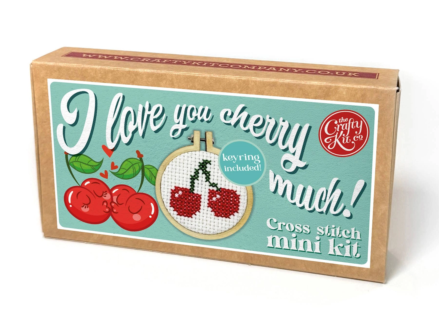 MINI KIT DE PONTO CRUZ EM CAIXA DE FÓSFOROS " I LOVE YOU CHERRY MUCH" MINI MATCHBOX KITS