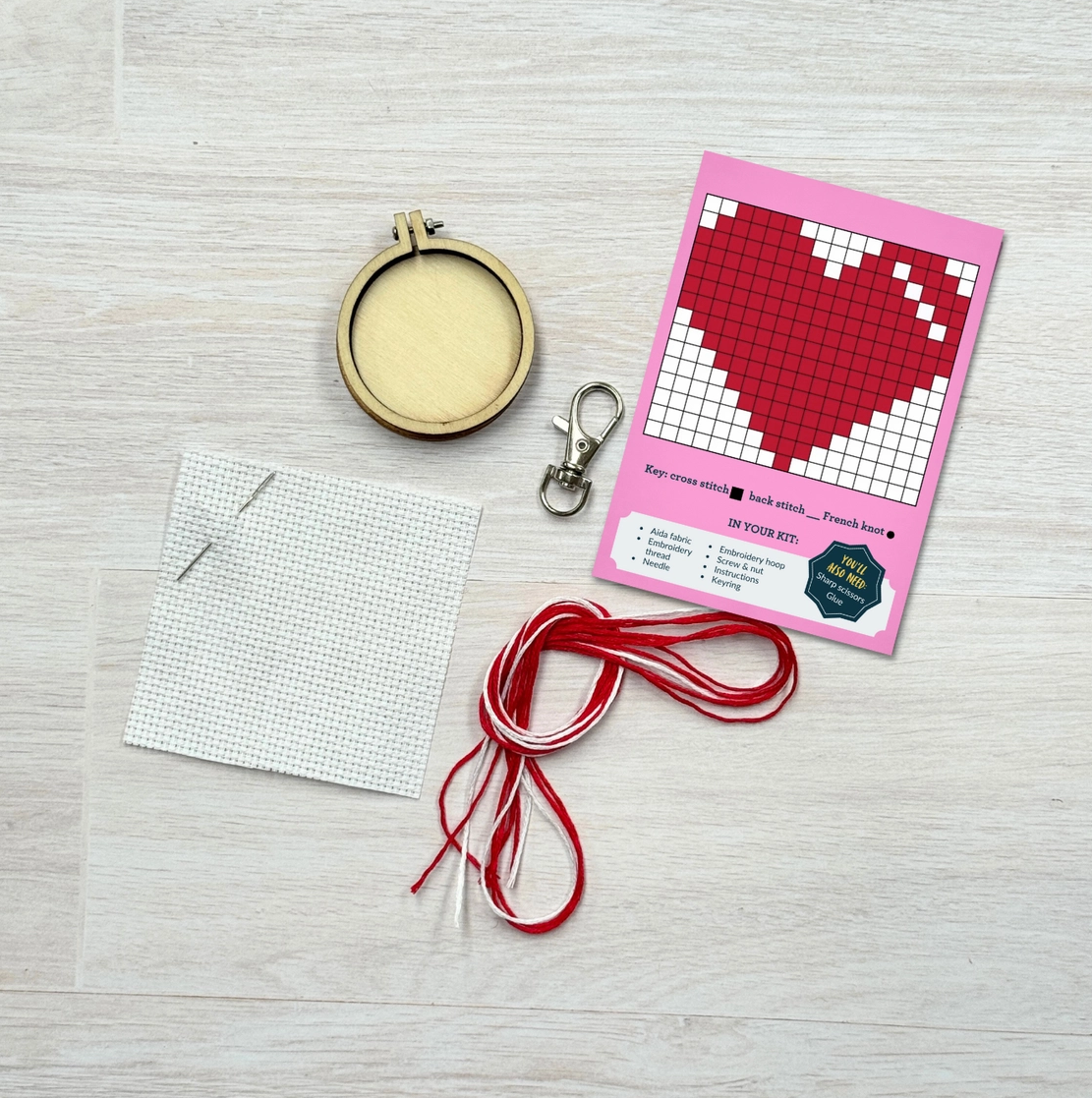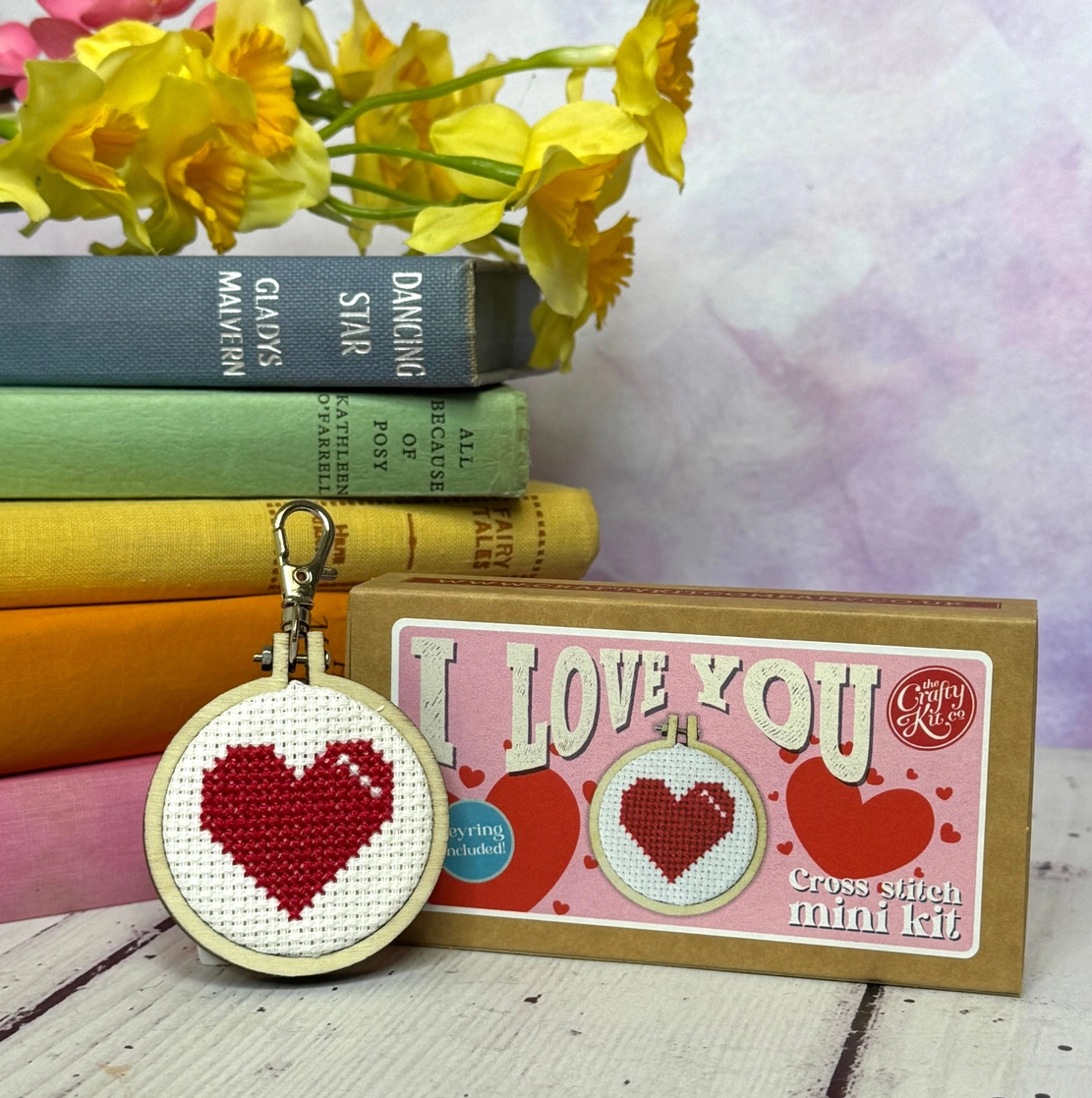 MINI KIT DE PONTO CRUZ EM CAIXA DE FÓSFOROS " I LOVE YOU" MINI MATCHBOX KITS