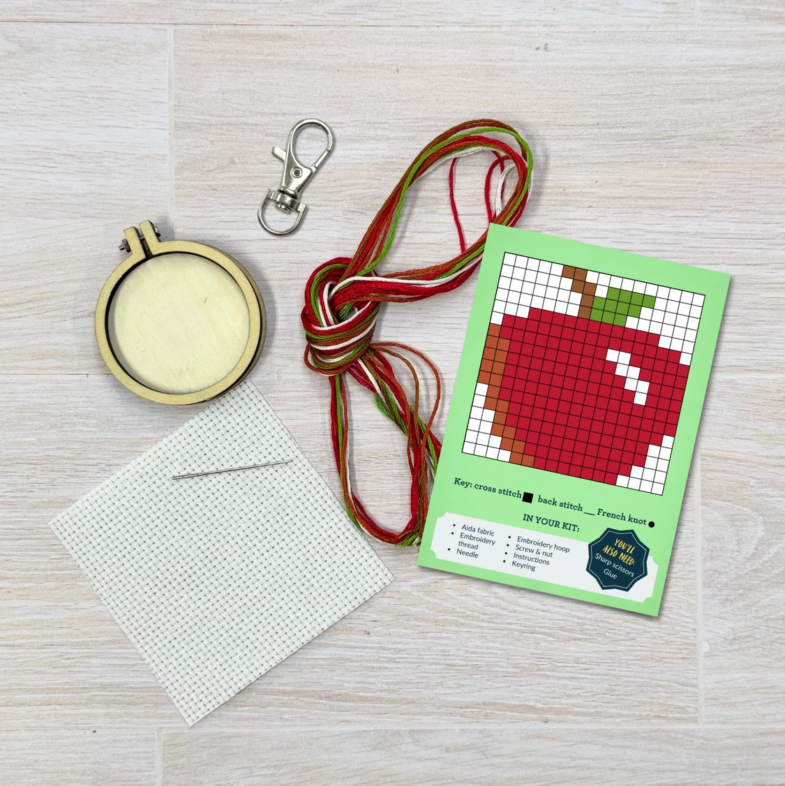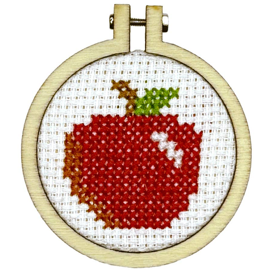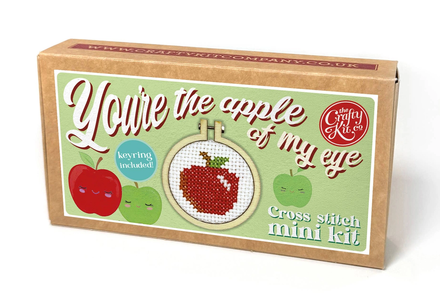 MINI KIT DE PONTO CRUZ EM CAIXA DE FÓSFOROS "YOU'RE THE APPLE OF MY EYE" MINI MATCHBOX KITS