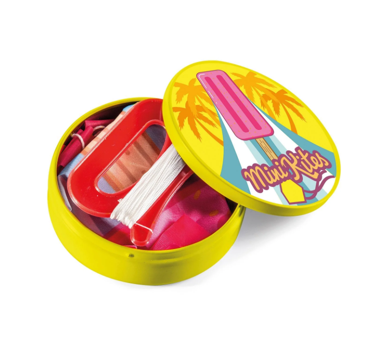 Large and bulky was yesterday. The small kite fits in every pocket thanks to the colorful tin can and is ready for use very quickly when wind is blowing.