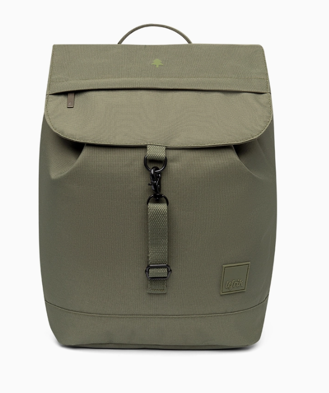 • mochila verde oliva com fecho frontal e logótipo leFRIK