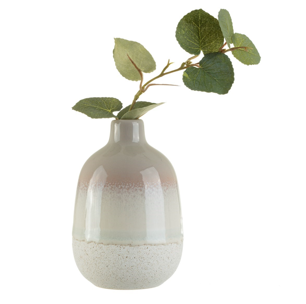 Inspired by the Southwestern deserts of America, this Mojave glaze vase is finished with a muted grey and beautiful for homes that radiate a mellow mood. The rustic texture and dip ombre effect are created from the reactive glaze which forms subtle variations in colour tones, making each one beautifully unique. Completed with a gloss finish.