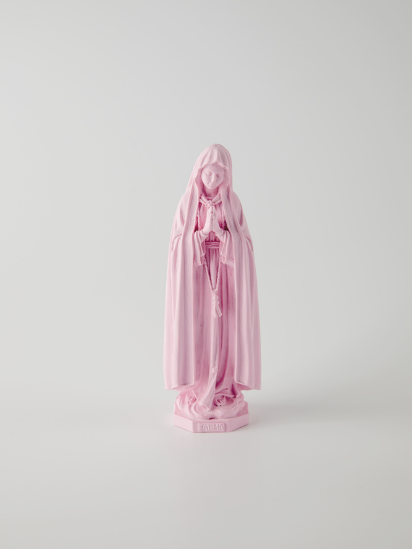 • Estátua rosa de Nossa Senhora com véu e terço em fundo branco