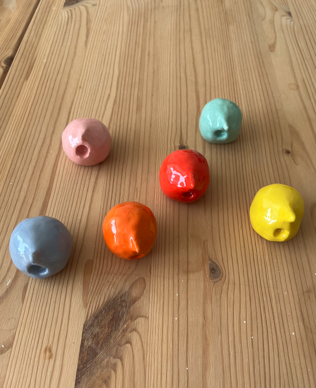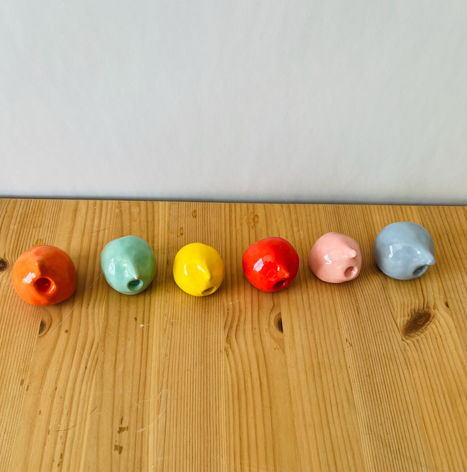 Peças em grés, feitas e pintadas à mao. Dimensoes podem variar.