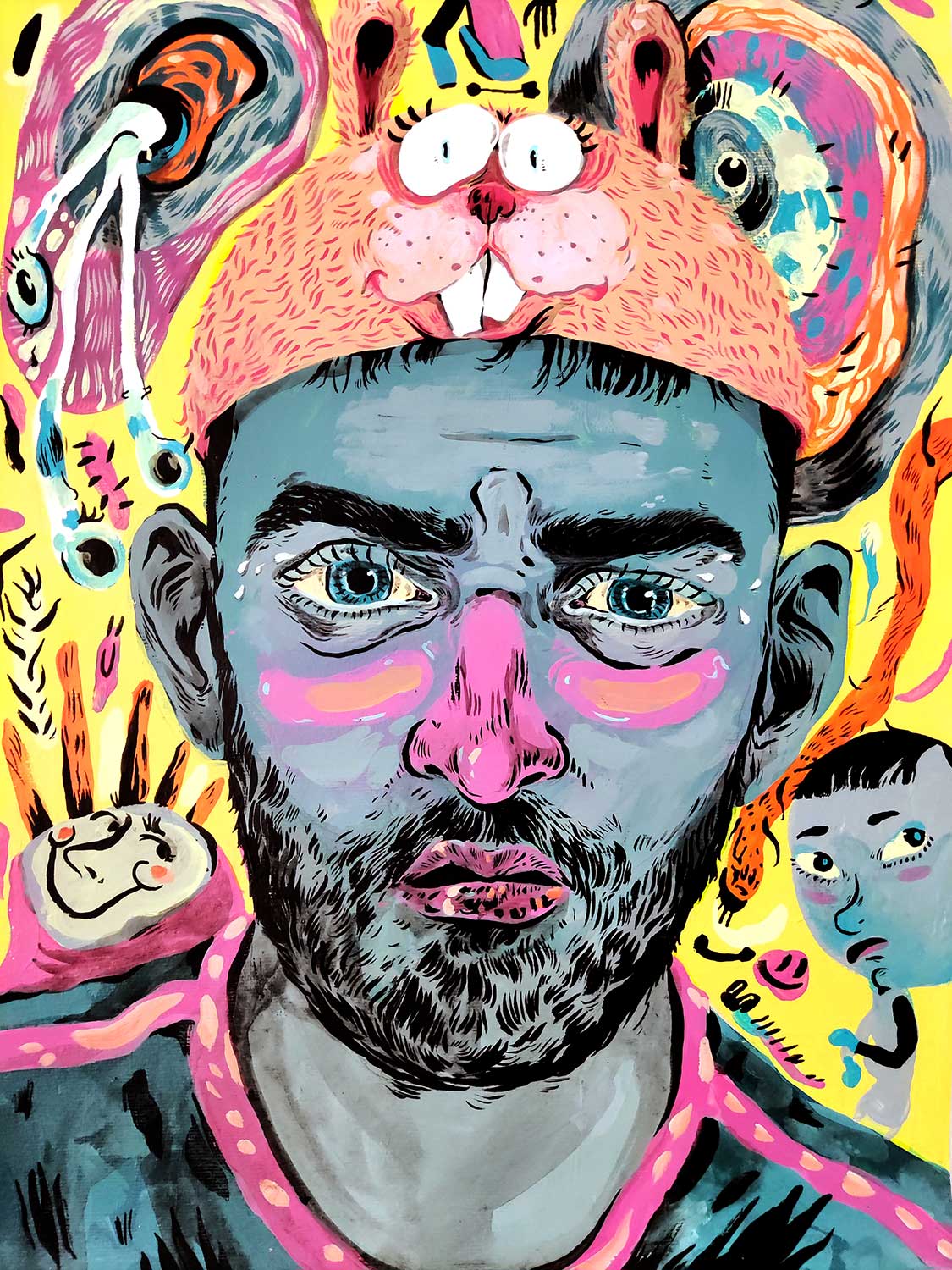 Algures em 2020, no âmbito de um projeto pessoal, comecei a experimentar fora do mundo da ilustração digital e comecei a trabalhar mais com acrílico e aquarela como suporte para minhas pinturas, o que me levou a sair da minha zona de conforto.