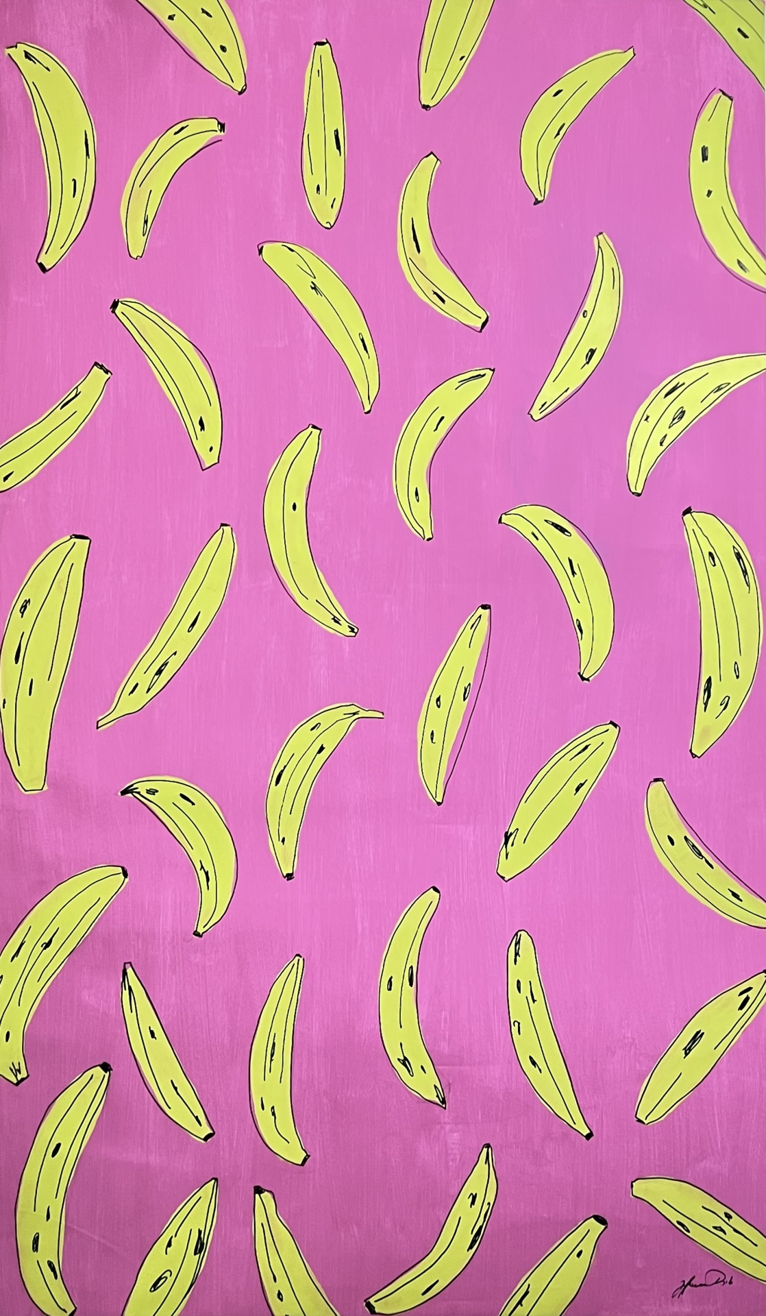 • Padrão de bananas amarelas desenhadas sobre fundo rosa