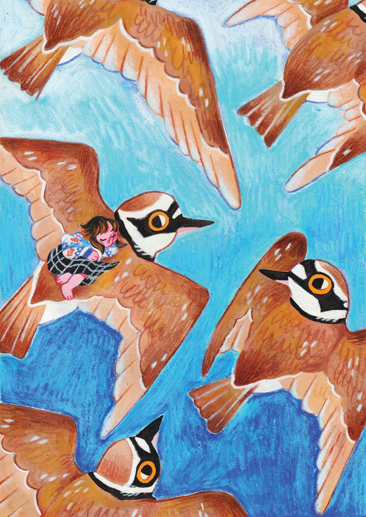 Técnica Mista (gouache, lápis de cor, crayon) sobre papel com textura lisa 160gr