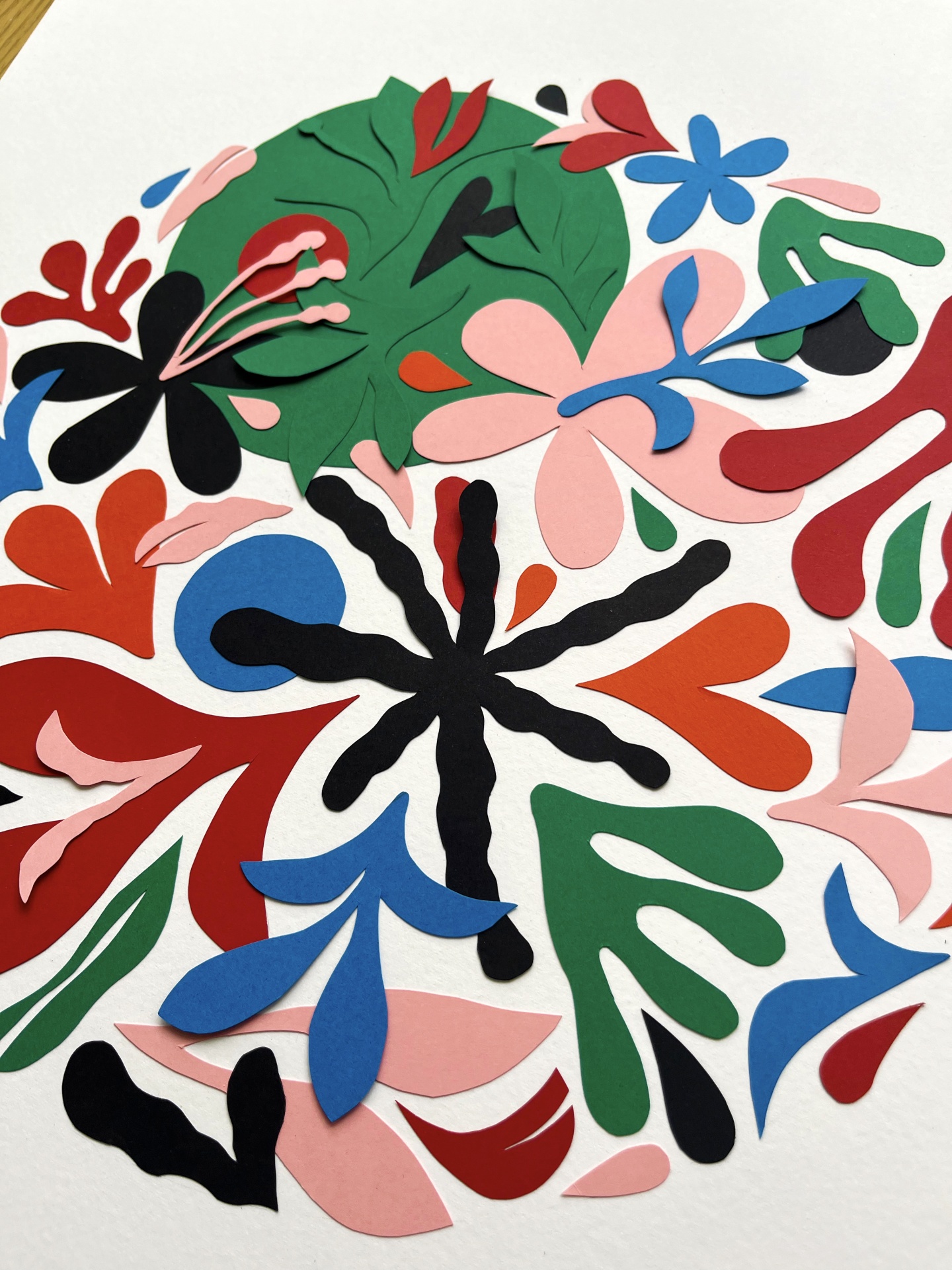 • Formas recortadas em papel colorido sobre fundo branco