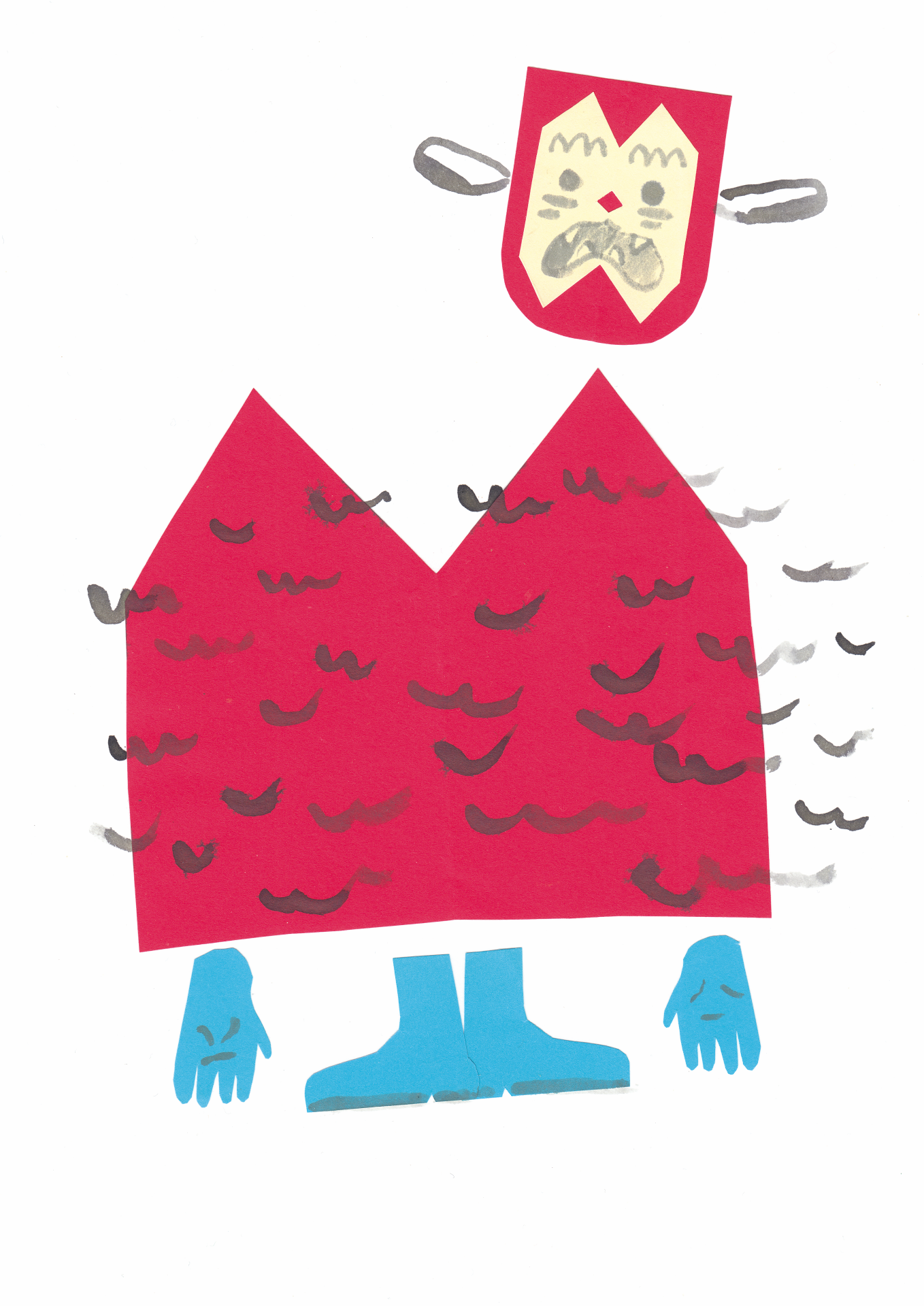 • Colagem de figura humana estilizada feita com recortes de papel colorido.